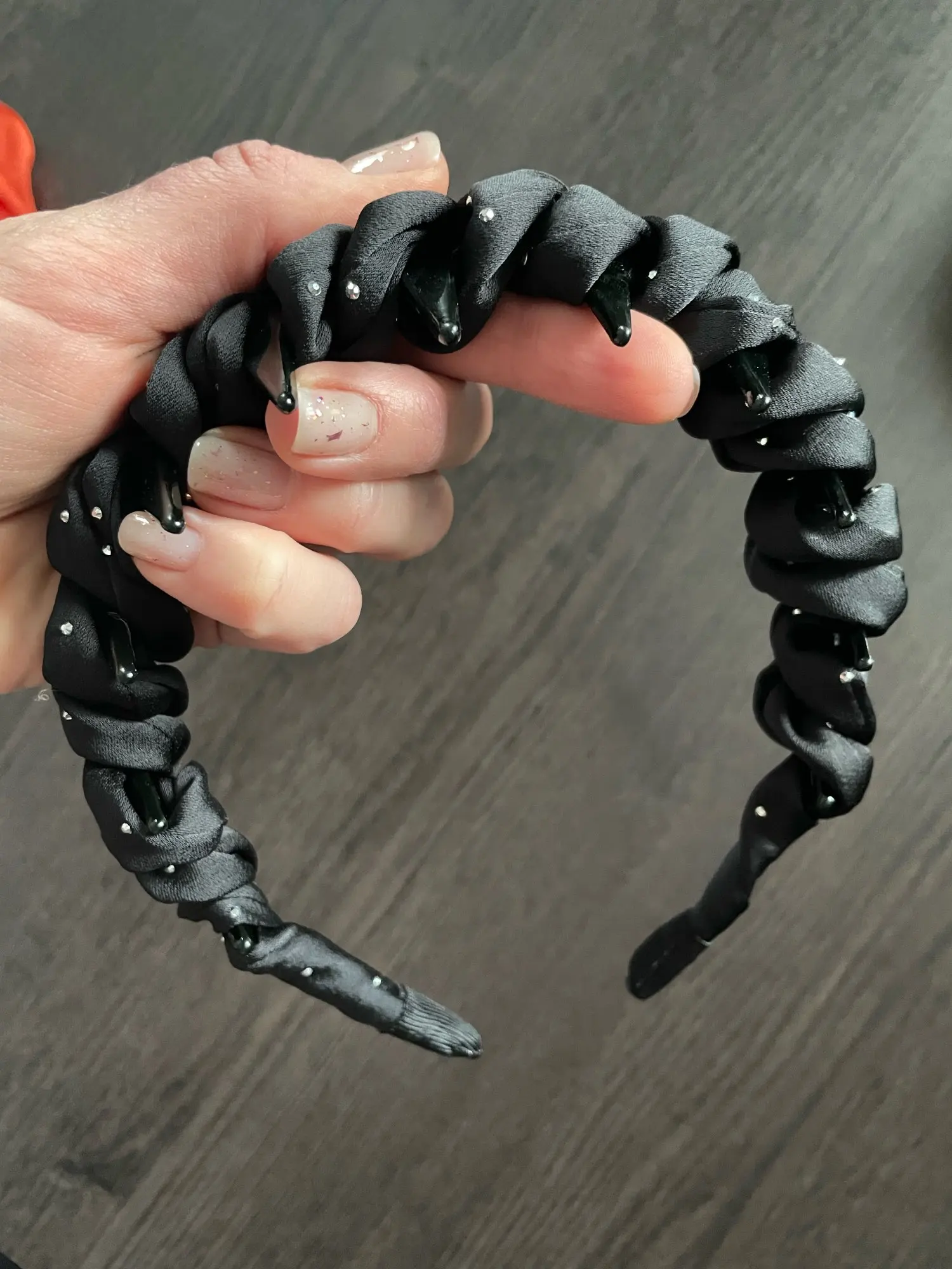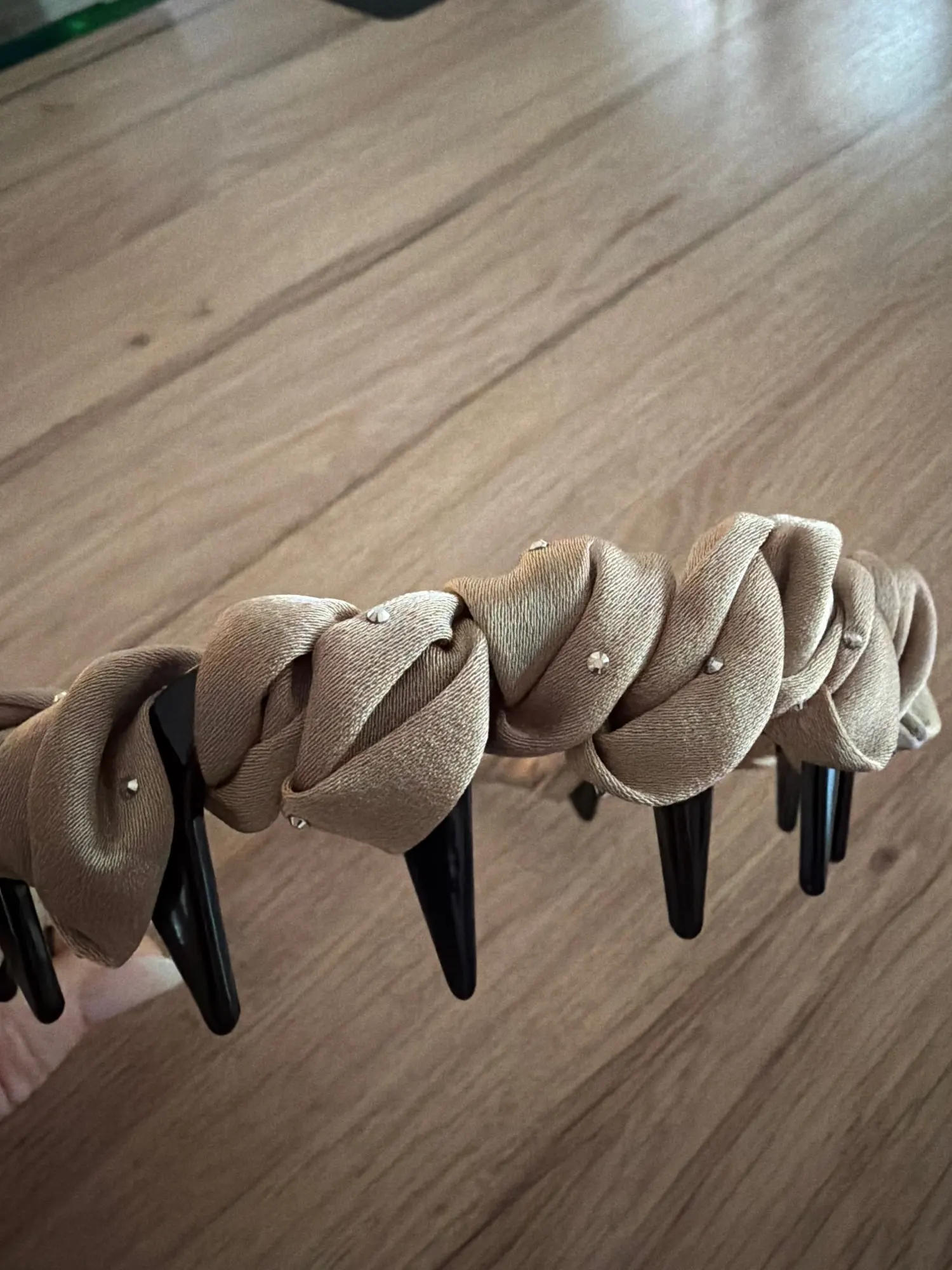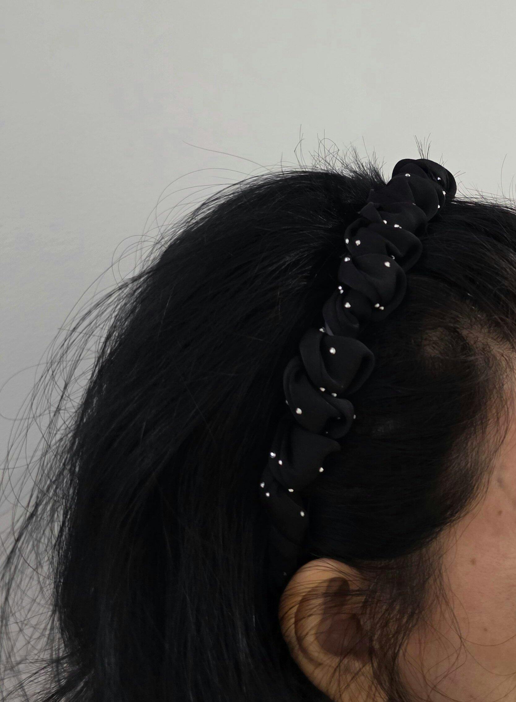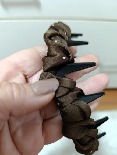 My wife loves the simple styling of this hair band. She said it has ‘bling’ and, and she’s worn one every week since. She loves how it works for both casual days and nights out — just change the color. The toothed grip holds strong, no slipping, even with fine or wavy hair. The fabric feels soft and the design is elegant.